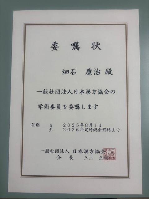 日本の漢方を代表する組織である日本漢方協会の役員を務めることとなりました。日本漢方の発展に尽力致します。